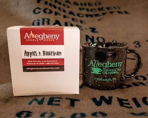 Tea Allegheny Coffee Tea Exchange. Long line but worth the wait. Featuring candles made in-house right here at Allegheny Coffee Tea Exchange and hand-poured into one of our mugs.