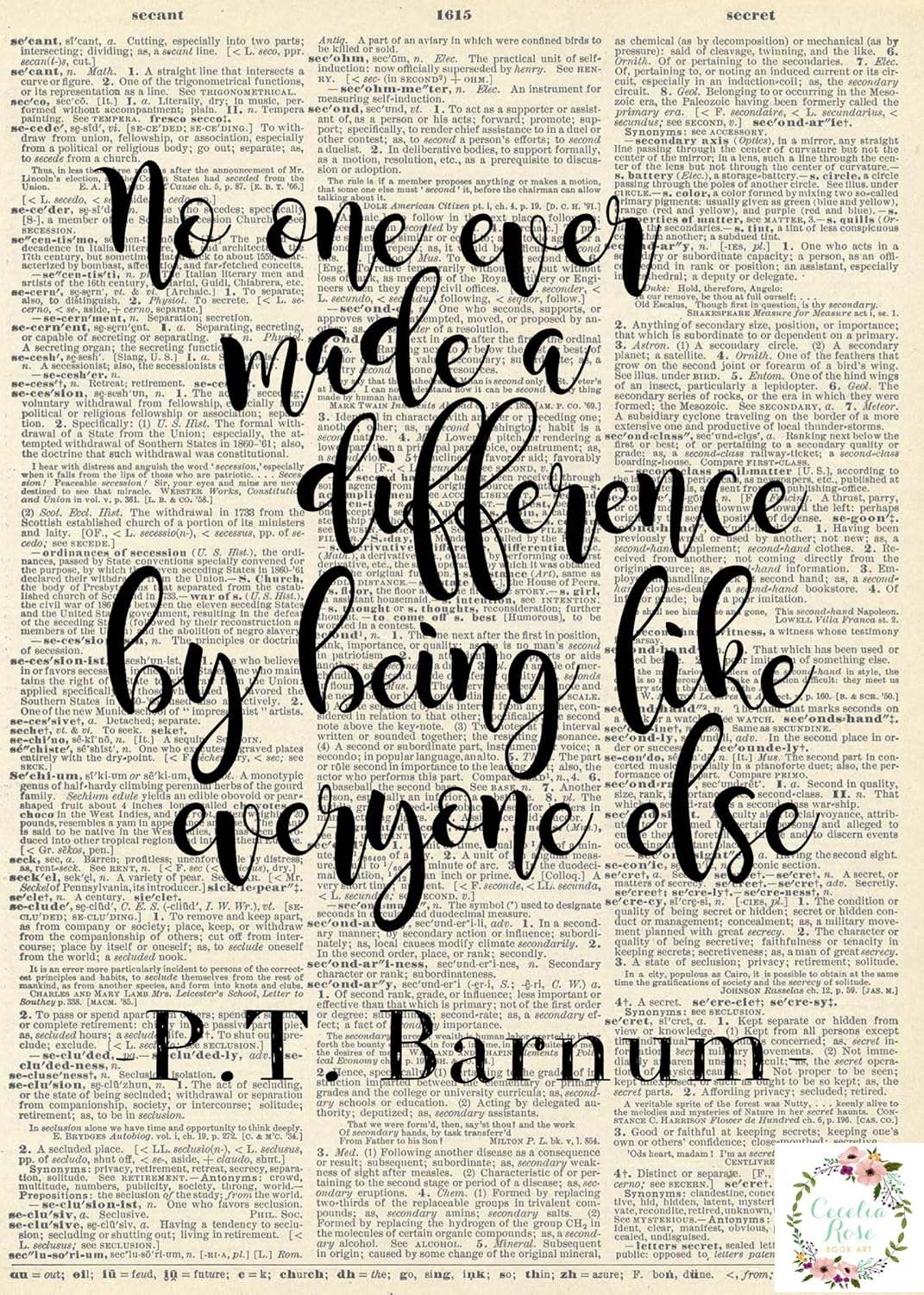 Home Kitchen No One Ever Made A Difference By Being Like Everyone Else P T Barnum The Greatest Showman Farmhouse Literary Typography Vintage Book Page Word Art Quote Print Wall Art Gift 6x8 Framed